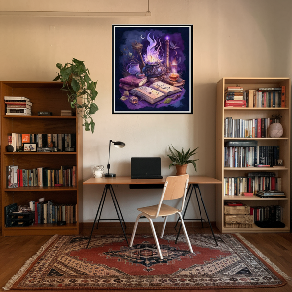 Plongez dans un univers de mystère et de magie avec ce kit de peinture diamant unique en son genre ! Avec son design envoûtant, ce kit représente un atelier de sorcière rempli de livres anciens, de potions, de bougies et d'un chaudron enflammé, créant une ambiance à la fois mystique et captivante.